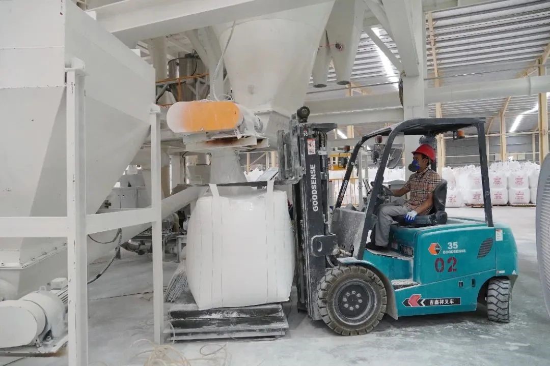 4月17日,在賀州高新區(qū)的五全新材料有限公司生產(chǎn)車間內(nèi),機器運行的轟鳴聲不絕于耳,工人們操作著裝卸叉車有條不紊地運輸粉體產(chǎn)品,現(xiàn)場一派繁忙的生產(chǎn)景象。