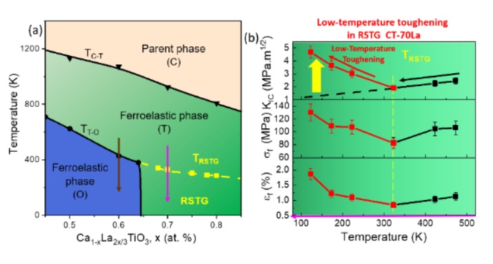 圖1,室溫到極低溫的陶瓷增韌新機制:再入型應(yīng)變玻璃(RSTG)