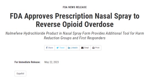 中國粉體網(wǎng)訊 5月22日,美國食品和藥物管理局(FDA)批準(zhǔn)處方藥, Indivior的納美芬鼻噴劑(商品名OPVEE®)上市,用于成年人和12歲以上青少年阿片類藥物過量的緊急治療。阿片類藥物過量表現(xiàn)為呼吸抑制和中樞神經(jīng)系統(tǒng)抑制。本次批準(zhǔn)基于藥效學(xué)研究證實OPVEE可以快速逆轉(zhuǎn)呼吸抑制。OPVEE預(yù)計將于2023年第四季度上市。