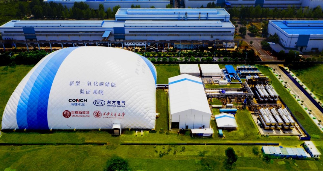 去年8月底,中國首個“新型二氧化碳儲能驗證項目”在四川德陽東方汽輪機廠區(qū)內(nèi)正式投入運行。該項目是全球單機功率最大、儲能容量最大的首個二氧化碳+飛輪儲能示范項目,也是四川省2022年世界清潔能源裝備大會八大示范應(yīng)用場景之一。項目占地18000㎡,儲能規(guī)模10MW/20MWh,由陜西化建設(shè)備制造公司承建,由百穰新能源、海螺集團、東方電氣、西安交通大學(xué)聯(lián)袂打造。該項目的建成,標(biāo)志著這一新型儲能技術(shù)在我國實現(xiàn)了工程應(yīng)用的巨大飛躍。