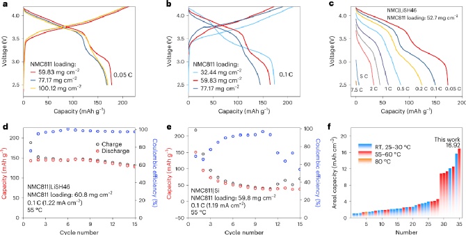 圖6|硬碳穩(wěn)定化Li-Si合金負(fù)極組裝高負(fù)載電池