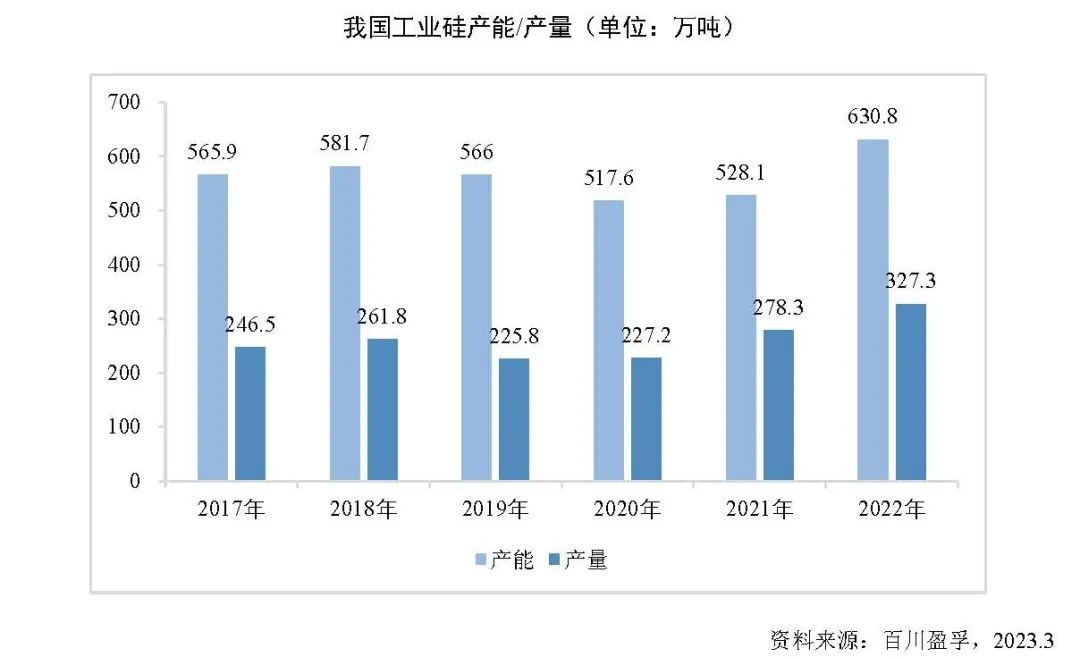 2022年全球工業(yè)硅產(chǎn)能合計約為778.3萬噸,同比增長15.46%,總產(chǎn)能同比有所增加。