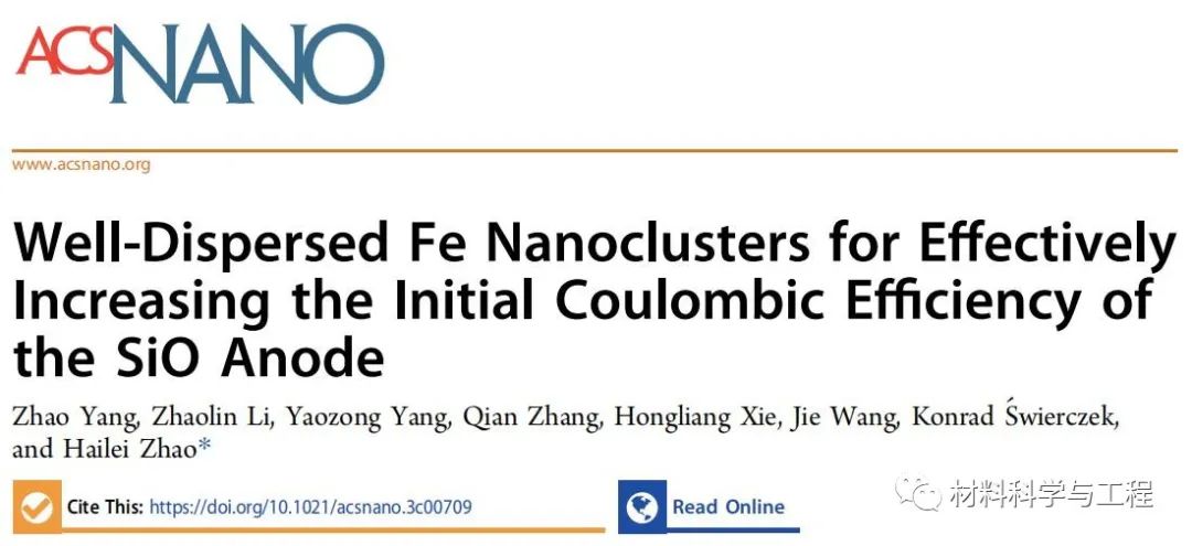 中國(guó)粉體網(wǎng)訊 北京科技大學(xué)趙海雷教授團(tuán)隊(duì)提出了一種有效的表面改性策略,以顯著提高SiO負(fù)極材料的首次庫(kù)侖效率(ICE)。通過(guò)化學(xué)氣相沉積法在SiO表面均勻包覆Fe納米團(tuán)簇成功制備了SiO@Fe負(fù)極材料,分散良好的Fe納米團(tuán)簇實(shí)現(xiàn)了與不可逆鋰化產(chǎn)物硅酸鋰的歐姆接觸,有效地降低了電子傳導(dǎo)勢(shì)壘,并促進(jìn)了硅酸鋰在脫鋰過(guò)程中的鋰離子釋放,提高了SiO負(fù)極的首次庫(kù)侖效率。相比原始SiO64.4%的首次庫(kù)倫效率,制備的SiO@Fe表現(xiàn)出87.2%的首次庫(kù)倫效率,除了預(yù)鋰化外,這種增量(23%)是從未報(bào)道過(guò)的,并且顯著增強(qiáng)了循環(huán)和倍率性能。這些發(fā)現(xiàn)提供了一種將“惰性”相轉(zhuǎn)化為“活性”相的有效方法,從而增加電極的首次庫(kù)侖效率。相關(guān)研究成果以“Well-Dispersed Fe Nanoclusters for Effectively Increasing the Initial Coulombic Efficiency of the SiO Anode”為題發(fā)表在ACS Nano上。