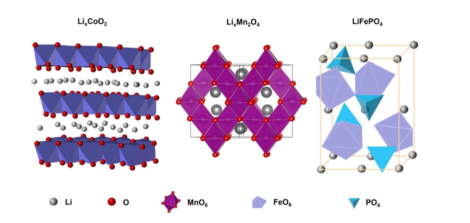 鈷酸鋰、錳酸鋰和磷酸鐵鋰正極材料的晶體結構