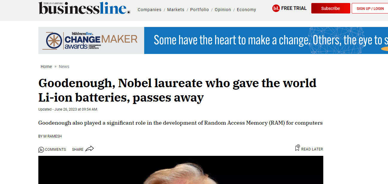中國粉體網(wǎng)訊 6月26日,據(jù)外媒報道,鋰離子電池的共同發(fā)明者、2019年諾貝爾化學獎得主John Bannister Goodenough于2023年6月去世,享年100歲。Goodenough去世的消息得到了他的學生NicholasGrundish的確認。