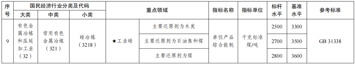 工業(yè)硅的能效基準(zhǔn)水平和標(biāo)桿水平