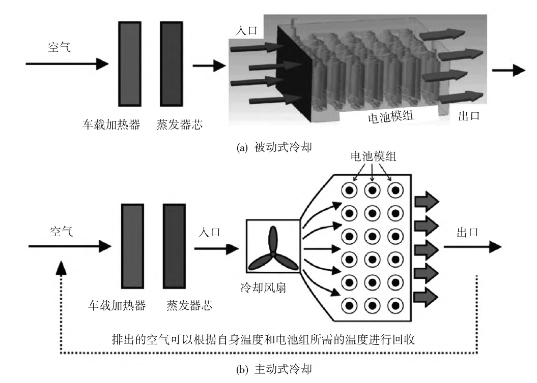 風(fēng)冷技術(shù)結(jié)構(gòu)示意圖(來源:黃沅輝等,《淺析新能源汽車動(dòng)力電池?zé)峁芾砑夹g(shù)》)