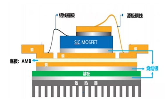 SiC MOSFET封裝模塊剖面圖,來(lái)源:低溫?zé)Y(jié)銀、中信建投