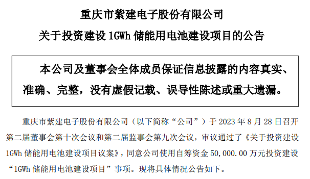 公告顯示,1GWh儲能用電池建設(shè)項目投資金額5億元,建設(shè)地點在重慶市萬州區(qū),建設(shè)內(nèi)容包括但不限于土建工程、軟硬件購置、鋪底流動資金,預(yù)計建設(shè)期為24個月。目標(biāo)是開發(fā)鈉離子電池產(chǎn)品、建立先進(jìn)的儲能電池生產(chǎn)基地,滿足中高端家庭儲能市場需求,抓住新能源發(fā)電和儲能行業(yè)發(fā)展機(jī)遇,擴(kuò)展公司主營業(yè)務(wù),為公司新的利潤增長點創(chuàng)造條件。