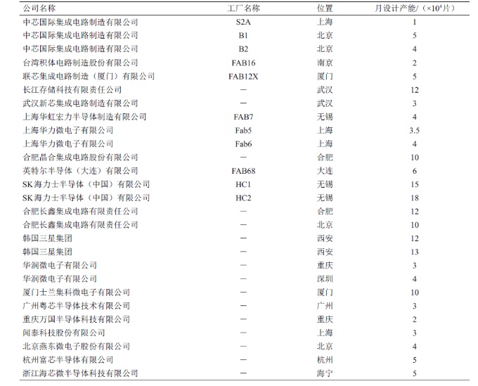 中國12 in晶圓廠數(shù)據(jù)匯總表