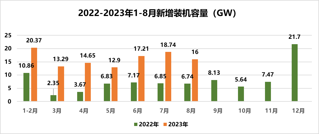 中國粉體網(wǎng)訊 9月19日,國家能源局發(fā)布1-8月份全國電力工業(yè)統(tǒng)計數(shù)據(jù)。1~8月光伏新增裝機(jī)113.16GW,同比增長154.46%,其中8月光伏新增裝機(jī)16GW,同比增長137.39%。