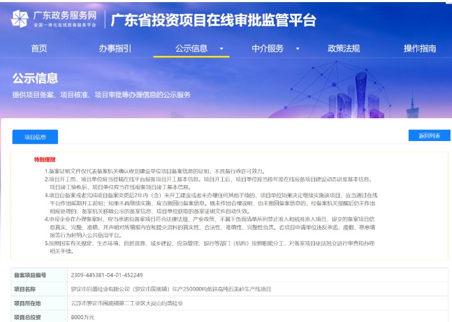 廣東湛江年產(chǎn)40萬(wàn)噸光伏硅砂項(xiàng)目備案