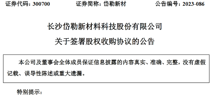 9月26日,岱勒新材發(fā)布公告,公司擬以現(xiàn)金方式購(gòu)買(mǎi)湖南黎輝新材料科技有限公司70%股權(quán),并簽署《股權(quán)收購(gòu)協(xié)議》,交易作價(jià)2.45億元。本次交易完成后,公司將持有黎輝新材70%股權(quán),黎輝新材將成為公司的控股子公司,納入公司合并報(bào)表范圍。公告顯示,黎輝新材成立于2014年,注冊(cè)資本5000萬(wàn)元,是一家高新技術(shù)企業(yè),主要從事石英坩堝用高純石英砂的研發(fā)、生產(chǎn)和銷(xiāo)售。