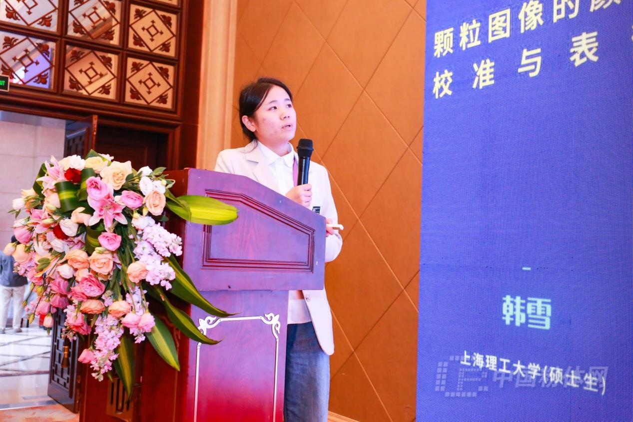 韓雪作《顆粒圖像的顏色校準(zhǔn)與表征》報(bào)告,搭建了彩色圖像法顆粒測量系統(tǒng),采用色塊校準(zhǔn)前后與色塊參考色值的平均色差來評估算法的回歸能力,驗(yàn)證在不同光源種類照射下該色彩校準(zhǔn)方法的可行性。