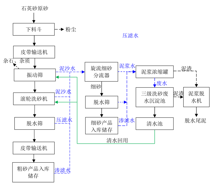 項目水洗砂生產(chǎn)線生產(chǎn)工藝流程圖