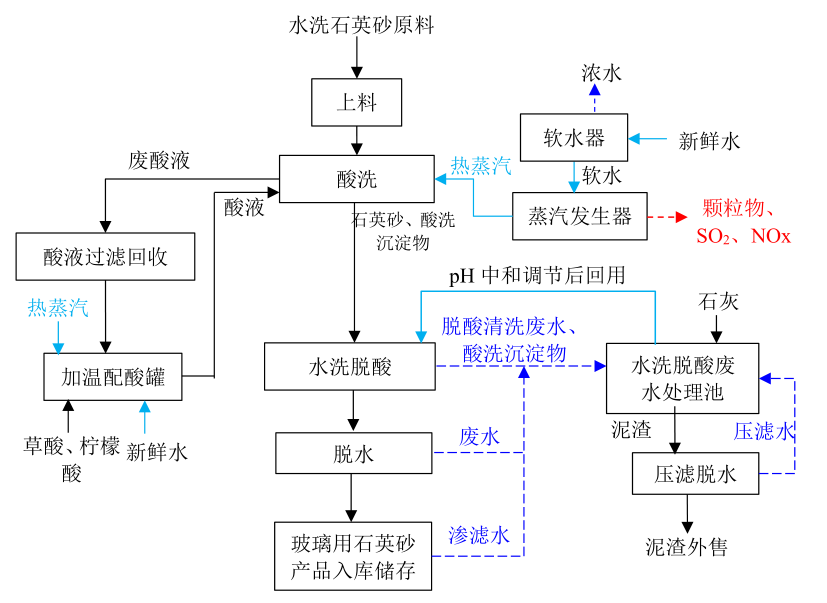 項目石英砂酸洗生產(chǎn)工藝流程圖