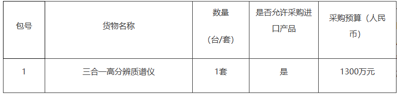 項目名稱:中國科學院上海藥物研究所三合一高分辨質(zhì)譜儀采購項目