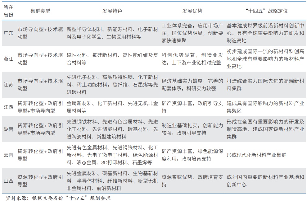 我國部分省份新材料產(chǎn)業(yè)集群發(fā)展特點