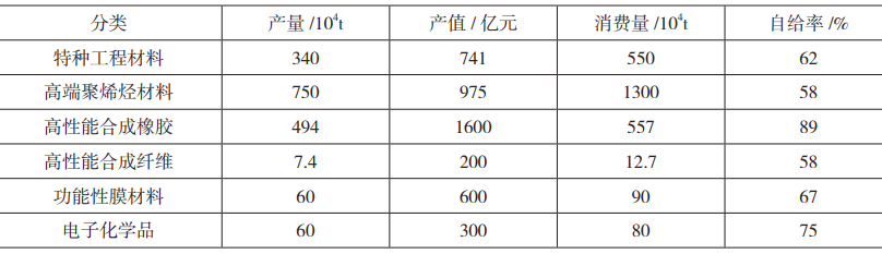 “十四五”初期我國主要化工新材料生產(chǎn)及消費情況