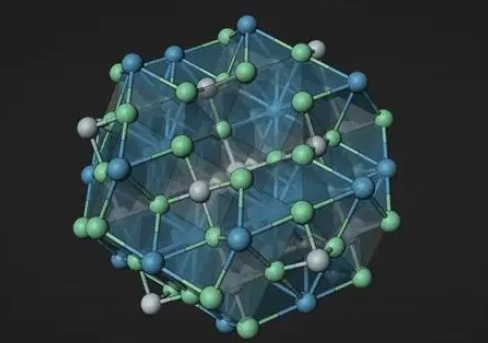 這種化合物(Ba6Nb7O21)是GNoME計算出的新材料之一,它包含鋇(藍色)、鈮(白色)和氧(綠色)。