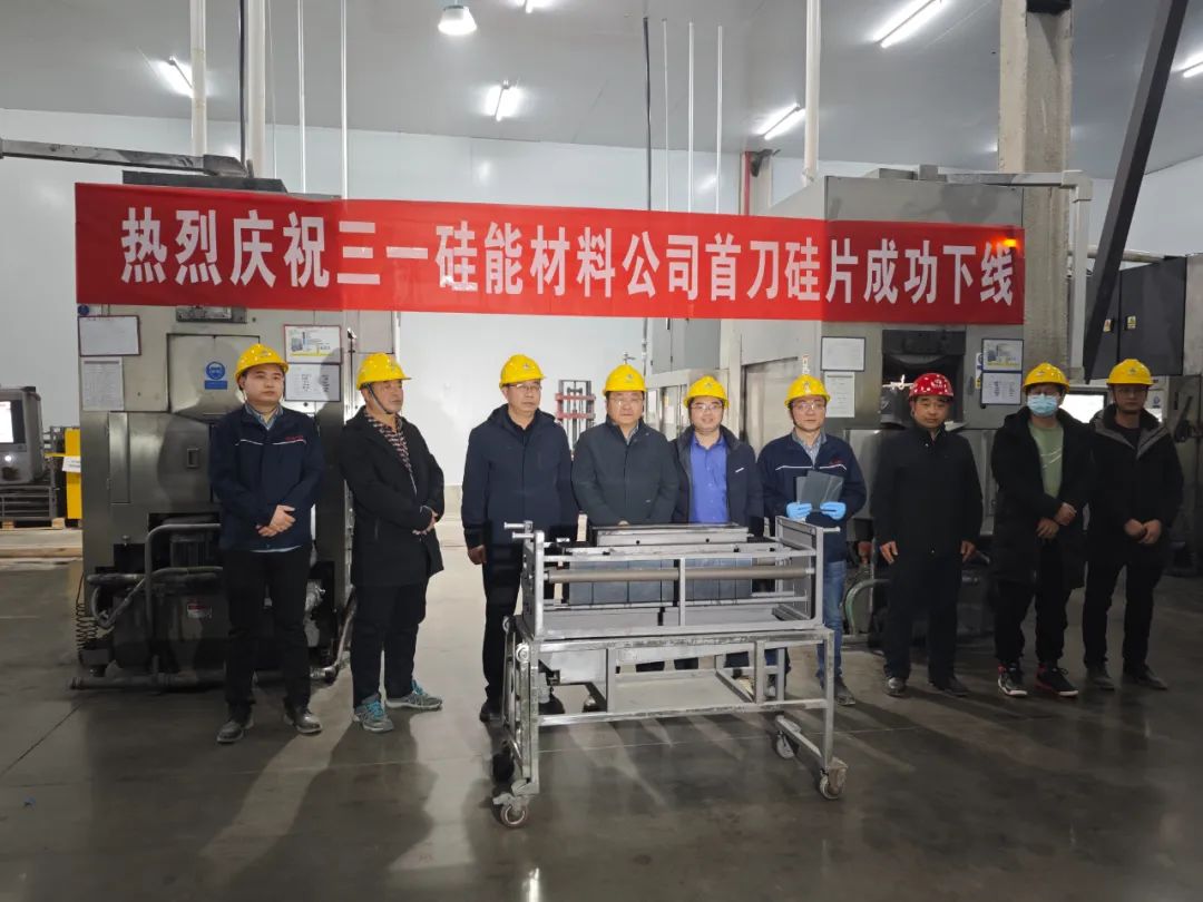 在項(xiàng)目施工現(xiàn)場(chǎng),三一硅能生產(chǎn)、設(shè)備、工藝、研發(fā)等所有部門(mén)齊心協(xié)力,多方面、多角度共同作業(yè),全力沖刺建設(shè)進(jìn)度,順利完成了首片182.2規(guī)格N型硅片的切割。