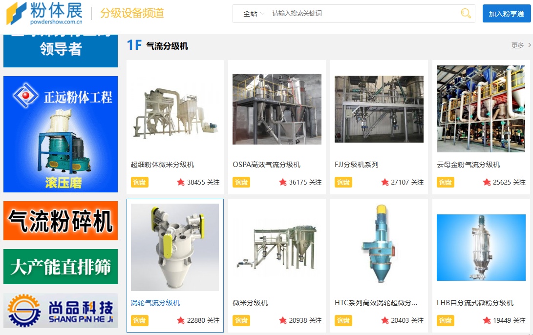 國(guó)內(nèi)先進(jìn)空氣分級(jí)機(jī) 圖源:粉體網(wǎng)-粉體展欄目