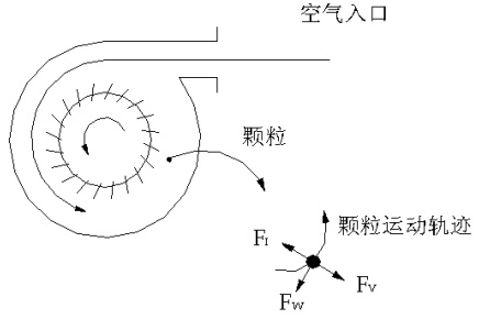 渦流空氣分級(jí)機(jī)分級(jí)室內(nèi)物料受力示意圖