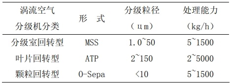 渦流空氣分級(jí)機(jī)的分類(lèi)及性能對(duì)比表
