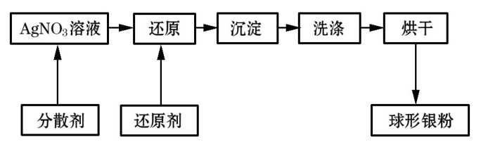 在銀粉制備方法中,液相還原法目前已成為實(shí)驗(yàn)室和工業(yè)化生產(chǎn)方面應(yīng)用最廣泛的一種制備方法。該方法一般采用氧化劑、還原劑、分散劑、表面改性劑、晶種 (選用) 等,相應(yīng)的工藝參數(shù)包括溶液濃度、pH值、反應(yīng)溫度、反應(yīng)時(shí)間、攪拌速率、加料方式等,這些工藝參數(shù)會(huì)直接決定銀粉的最終技術(shù)參數(shù)。因此,在銀粉制備過程中,需要全面考慮試劑類型、參數(shù)控制、后續(xù)處理等因素。