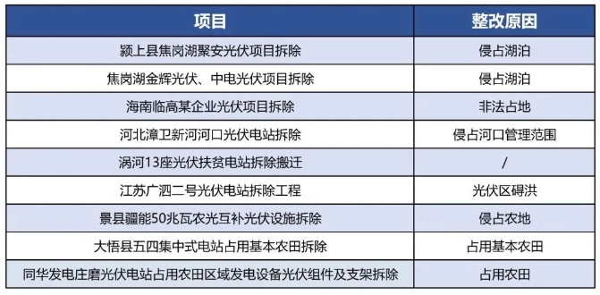 但實(shí)際上,由于光伏用地政策涉跨部門(mén)管理,在執(zhí)行過(guò)程中,各省甚至各地區(qū)的光伏用地政策卻不盡相同。不少新建、在建或存量項(xiàng)目受水利、用地政策調(diào)整而被拆除,比如潁上縣焦崗湖聚安光伏項(xiàng)目因侵占湖泊被拆除、海南臨高某企業(yè)光伏項(xiàng)目非法占地拆除、景縣疆能50兆瓦農(nóng)光互補(bǔ)光伏侵占耕地被拆除等。