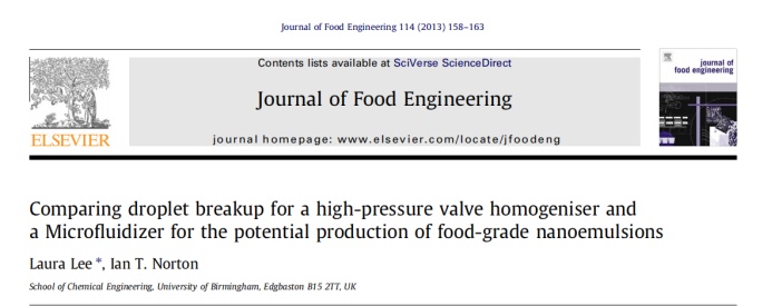 [1]L. Lee and I. T. Norton, “Comparing droplet breakup for a high-pressure valve homogeniser and a Microfluidizer for the potential production of food-grade nanoemulsions,” J. Food Eng., vol. 114, no. 2, pp. 158–163, 2013, doi: 10.1016/j.jfoodeng.2012.08.009.