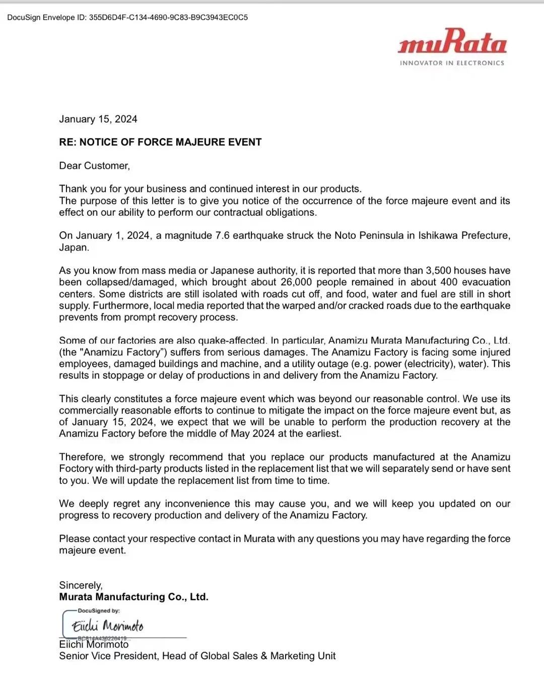 1月17日,MLCC龍頭村田制作所發(fā)布公告,介紹了旗下所有受到了2024年1月1日日本能登半島地震影響的13座工廠的最新進(jìn)展: