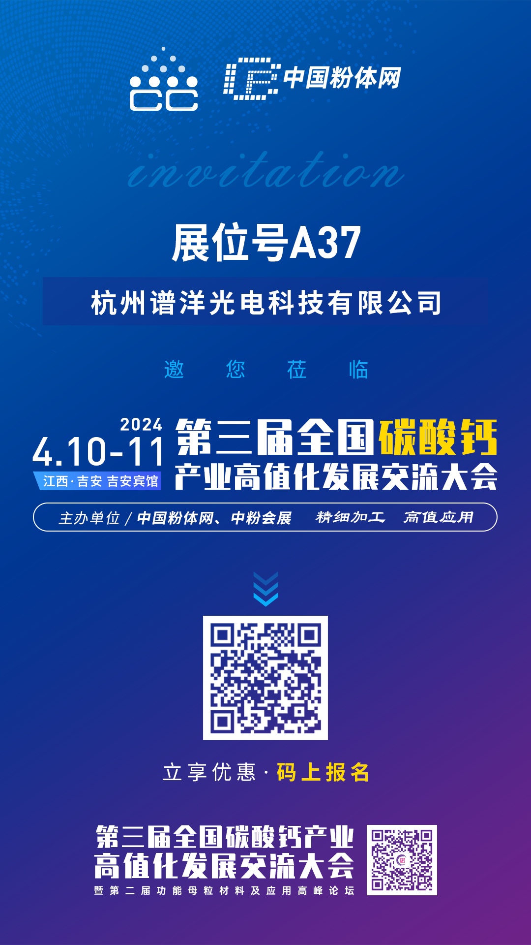 由中國粉體網(wǎng)主辦的“2024第三屆全國碳酸鈣交流會”將于2024年4月10-11號在江西吉安舉辦,杭州譜洋光電科技有限公司邀您一同參加。