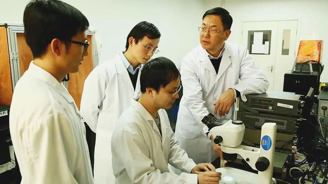 王中林(右)帶領(lǐng)團(tuán)隊(duì)做研究。(北京納米能源所供圖)