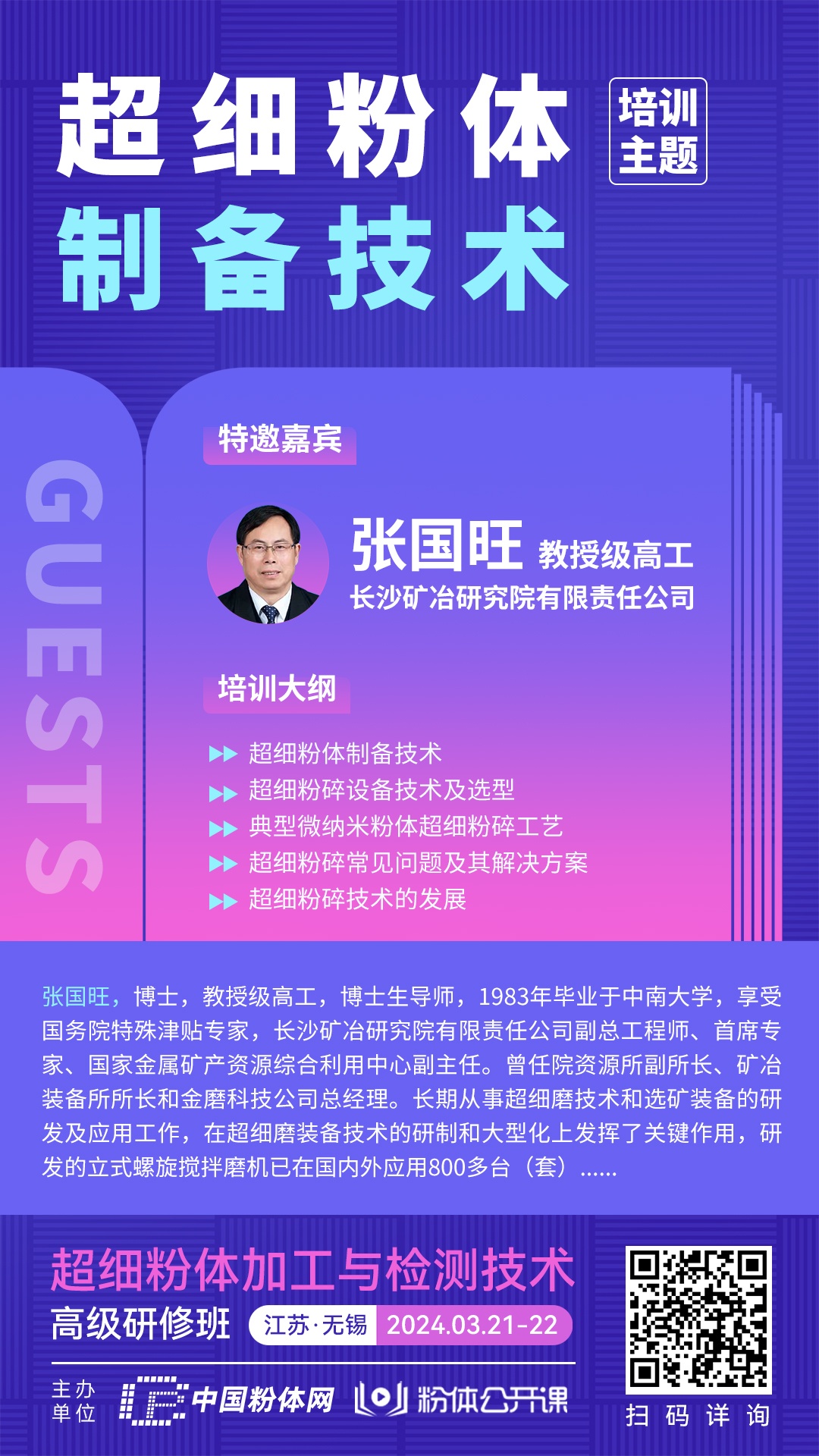 本次培訓(xùn)班特邀長沙礦冶研究院張國旺教授級高工帶來《超細(xì)粉體制備技術(shù)》!歡迎大家積極報(bào)名參會(huì)學(xué)習(xí)!