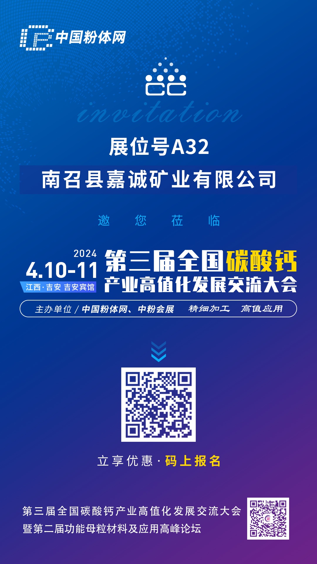 由中國(guó)粉體網(wǎng)主辦的“2024第三屆全國(guó)碳酸鈣交流會(huì)”將于2024年4月10-11號(hào)在江西吉安舉辦,南召縣嘉誠(chéng)礦業(yè)有限公司邀您一同參加。
