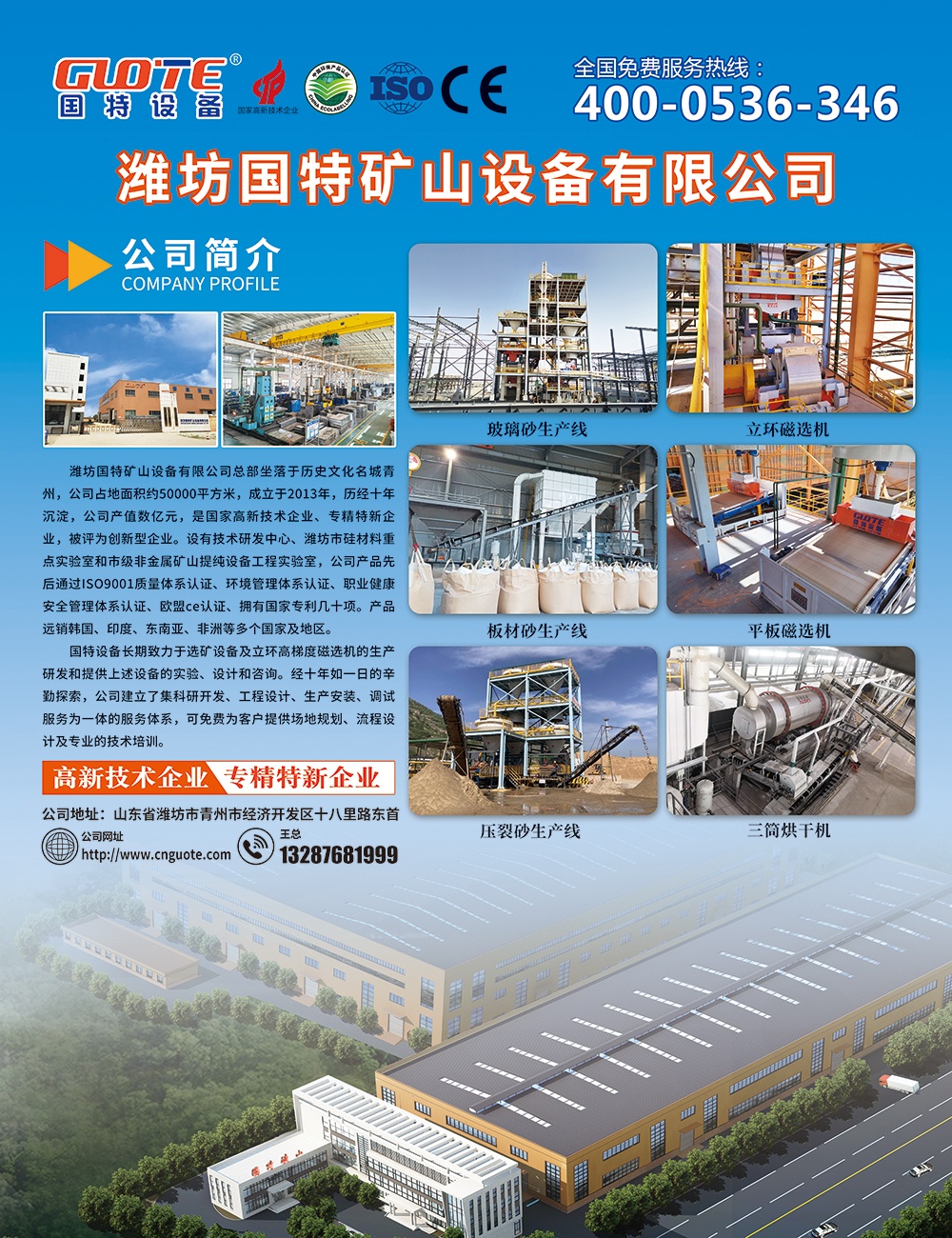 國特設(shè)備長期致力于石英砂、石英板材砂、硅微粉專用設(shè)備,立環(huán)高梯度磁選機、平板磁選機、滾筒磁選機及其他石英砂配套設(shè)備的生產(chǎn)研發(fā)和提供上述生產(chǎn)線的實驗、設(shè)計、咨詢及整線供貨;經(jīng)十年如一日的辛勤探索公司建立了集科研開發(fā)、工程設(shè)計、生產(chǎn)安裝、調(diào)試服務(wù)為一體的服務(wù)體系。