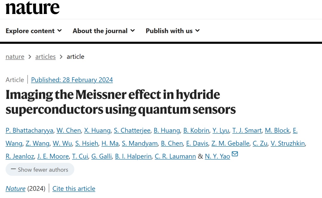中國(guó)粉體網(wǎng)訊 近日,吉林大學(xué)物理學(xué)院黃曉麗教授等人與美國(guó)加州大學(xué)伯克利分校、勞倫斯伯克利國(guó)家實(shí)驗(yàn)室、哈佛大學(xué)的NormanYao教授團(tuán)隊(duì)合作,在高壓下超導(dǎo)富氫化物的超導(dǎo)電性實(shí)驗(yàn)研究方面取得了重大突破,利用金剛石氮-空位色心(NVcenter)量子傳感技術(shù),成功實(shí)現(xiàn)超高壓下富氫化合物的邁斯納效應(yīng)實(shí)驗(yàn)測(cè)量。這一重大研究成果以“Imaging the Meissner effect inhydride superconductors using quantum sensors”為題,于2024年2月28日發(fā)表在Nature上。在同期Nature上,香港科技大學(xué)的楊森教授等人以“Quantum sensor.settles debate about superconductivity in hydrides”為題進(jìn)行了亮點(diǎn)評(píng)述。
