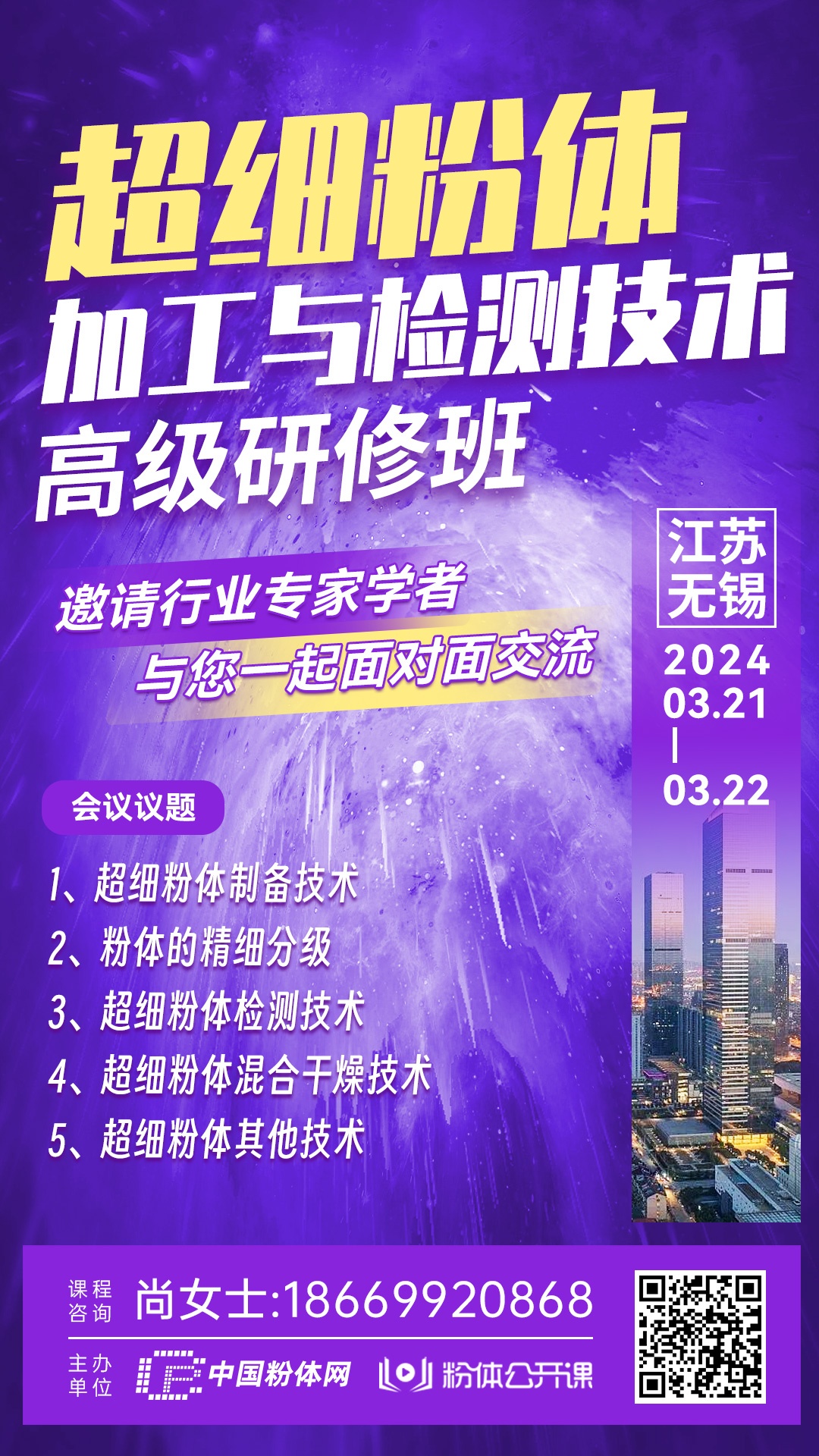 中國粉體網(wǎng)訊 2024超細粉體加工與檢測技術高級研修班將于3月21-22號在江蘇·無錫舉辦,鎮(zhèn)江貝斯特新材料有限公司邀您一同參加。