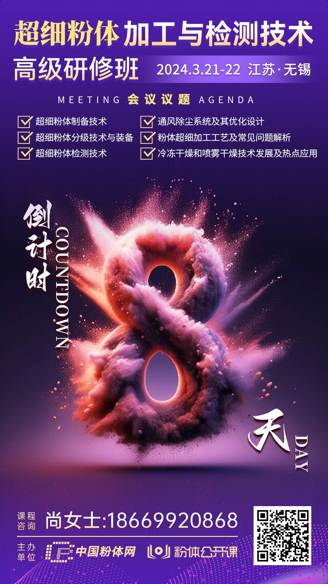 中國粉體網(wǎng)訊 2024超細粉體加工與檢測技術高級研修班將于3月21-22號在江蘇·無錫舉辦,深圳索理德新材料科技有限公司邀您一同參加。