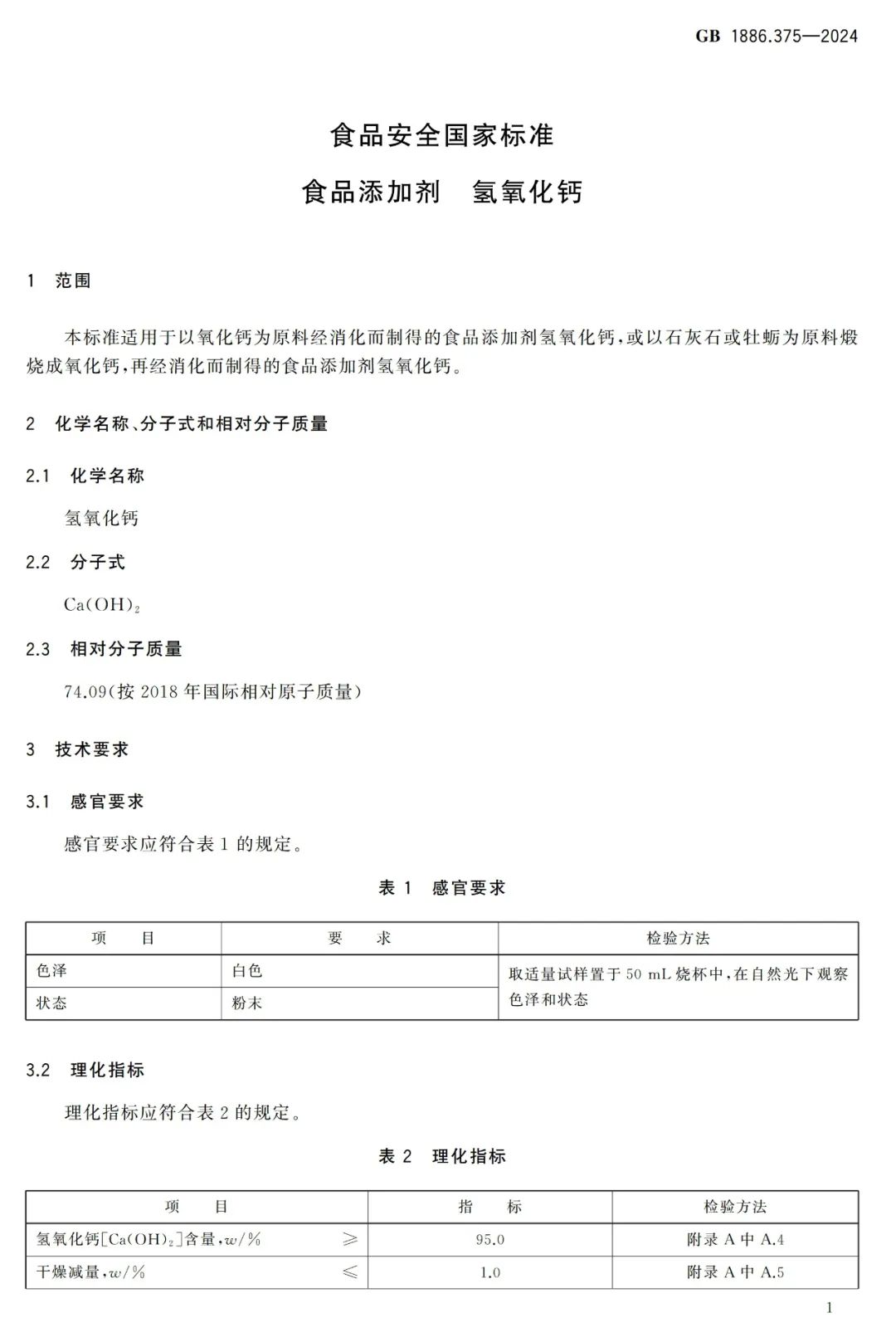 食品添加劑 氫氧化鈣》也正式發(fā)布。