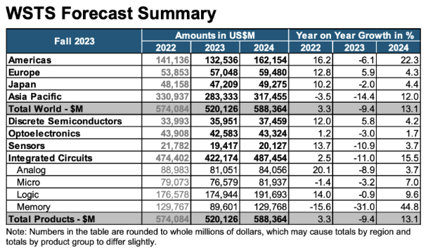 大多數(shù)其他主要細分市場,包括分立器件、傳感器、模擬器件、邏輯器件和微型器件,預(yù)計也將實現(xiàn)個位數(shù)增長率。從區(qū)域角度來看,所有市場都將在2024年持續(xù)擴張。尤其是美洲和亞太地區(qū),預(yù)計將出現(xiàn)兩位數(shù)的同比大幅增長。