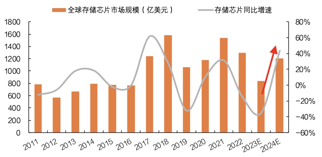 2011-2024年全球存儲芯片市場規(guī)模情況