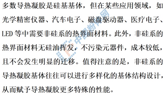 非硅系的導熱凝膠往往以聚丙烯酸(PAA)、聚氨酯、聚烯烴等樹脂體系為基礎(chǔ),其特點是易生成相對堅硬的彈性體。