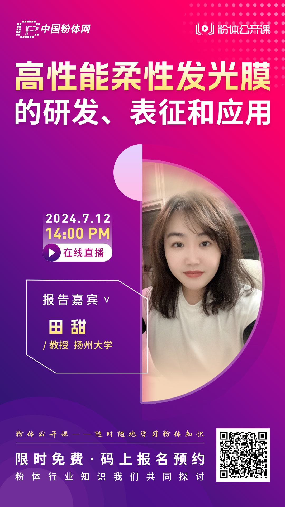 粉體公開課特邀揚州大學(xué)田甜教授帶來精彩報告:高性能柔性發(fā)光膜的研發(fā)、表征和應(yīng)用,歡迎大家掃碼預(yù)約觀看!