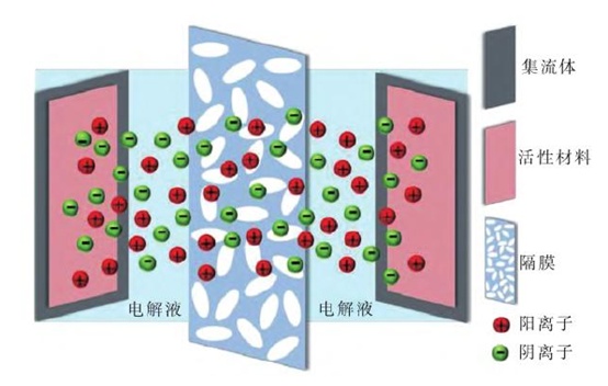 超級(jí)電容器基本結(jié)構(gòu)示意圖