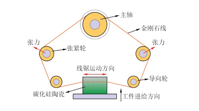 用金剛石線繩鋸機(jī)切割碳化硅陶瓷示意圖