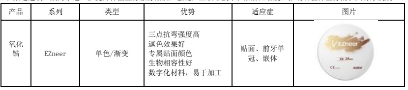 2021年,推出EZneer貼面氧化鋯,兼具高硬度、高透度以及仿真效果,開拓貼面美學(xué)修復(fù)市場。