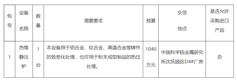 項(xiàng)目名稱:中國(guó)科學(xué)院金屬研究所熱等靜壓爐采購(gòu)項(xiàng)目