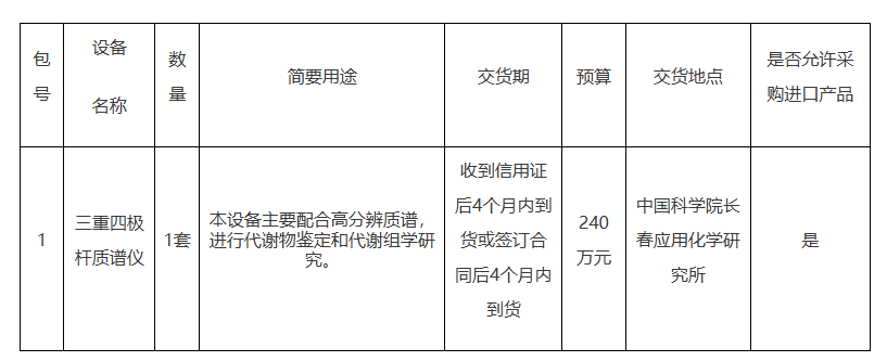 項(xiàng)目名稱:中國(guó)科學(xué)院長(zhǎng)春應(yīng)用化學(xué)研究所國(guó)家電化學(xué)與光譜研究分析中心之三重四極桿質(zhì)譜儀采購(gòu)項(xiàng)目